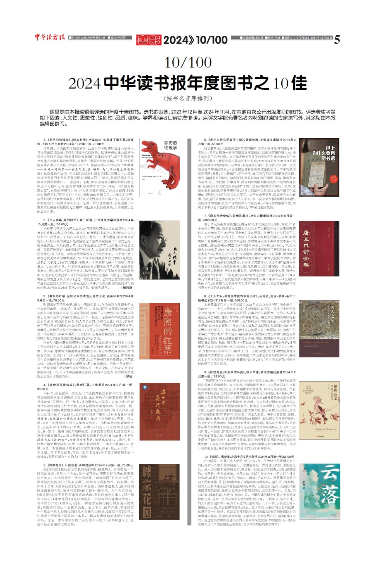 2024年12月25日,《中华读书报》评选出2024年度十佳图书,章开沅先生所著的《凡人琐事:我的回忆》入选其中。据悉,本次《中华读书报》评选范围为2023年12月至2024年11月在内地首次公开出版发行的图书。评选着重考量如下因素:人文性,思想性,独创性,品质,趣味以及学者和读者口碑。